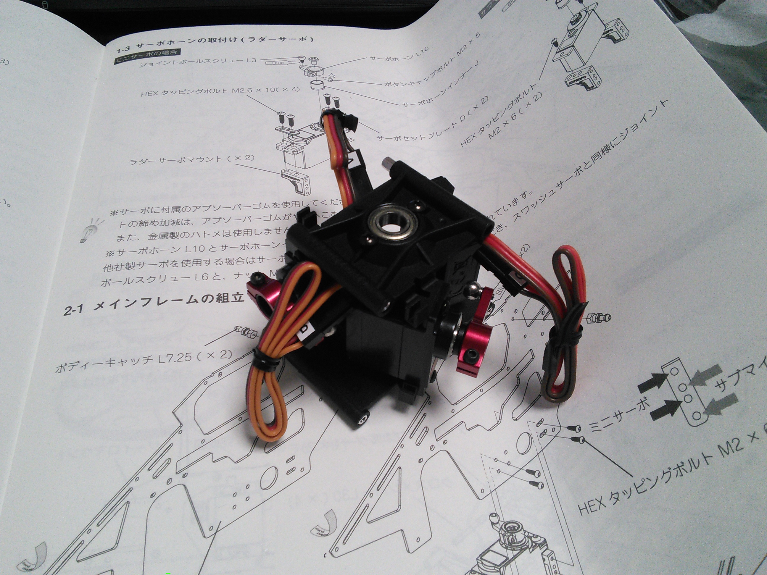 スワッシュサーボの取付。